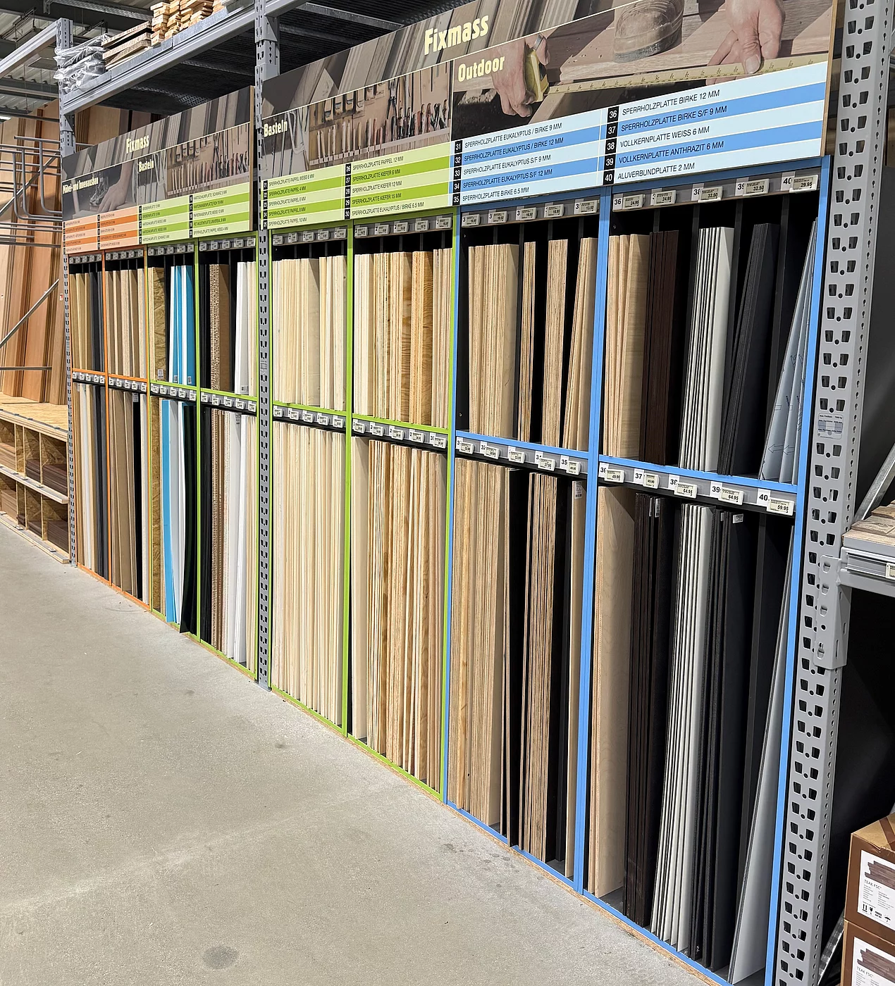 Ein innovatives Sortiment: Das Fixmass-Sortiment umfasst eine vielfältige Auswahl an Holzwerkstoff-Platten, die in handlichen Formaten erhältlich sind. Diese Formate wurden speziell entwickelt, um sowohl den Anforderungen von Heimwerkern als auch von Profi-Anwendern gerecht zu werden. Das Sortiment bietet Lösungen in den Bereichen Möbel- und Innenausbau, Basteln und Outdoor-Projekte.