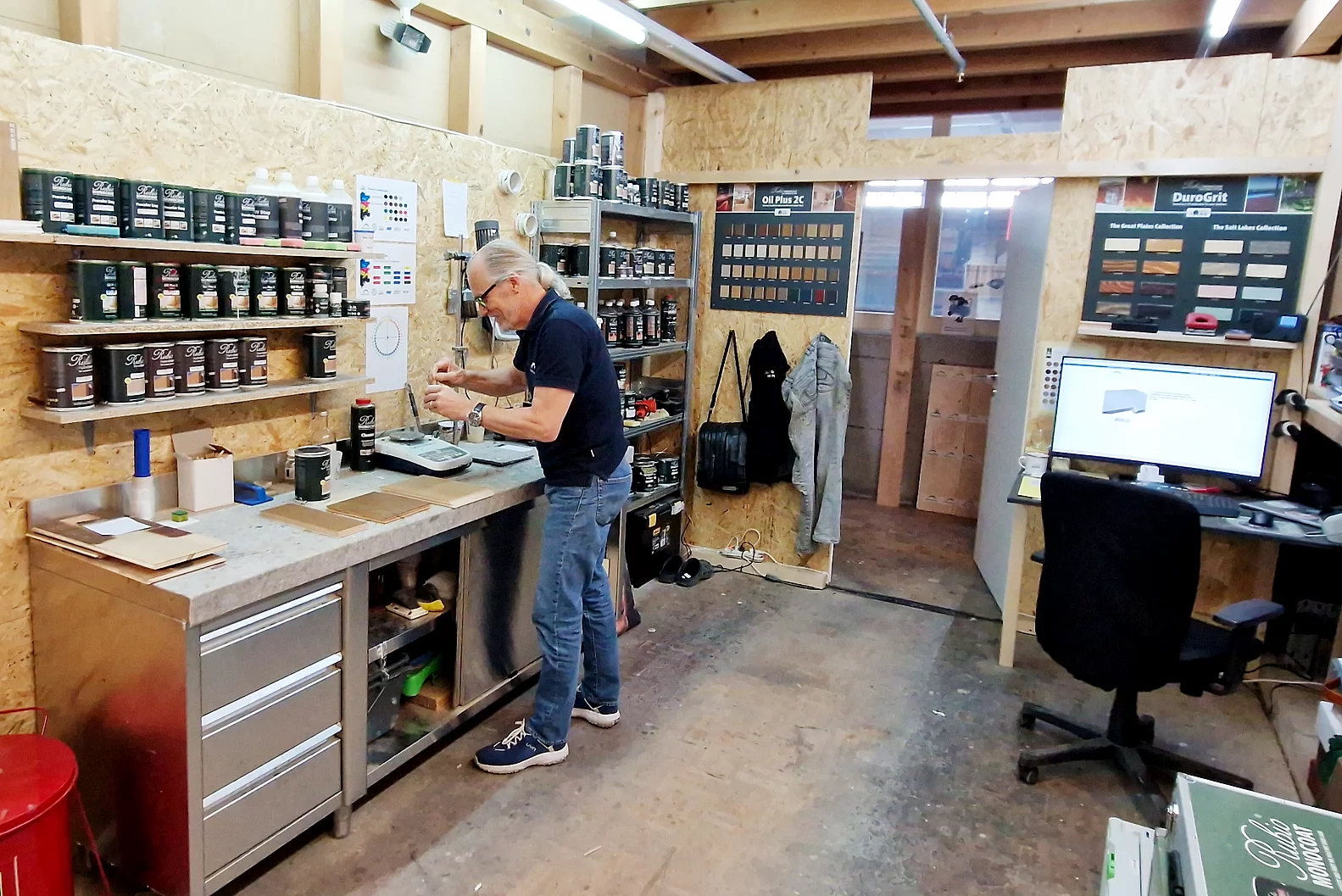 Auf der Strasse ist er genauso zuhause. Mit seinem Spezialgebiet Rubio® Monocoat Interior oder Exterior ist er praktisch in der ganzen Deutschschweiz «on Tour» und schult Kunden. Er möchte die Verarbeiter vor allem motivieren, planvoll an die Arbeit zu gehen. Mit dem neu gewonnenen Wissen sollen sie vor einem Arbeitsschritt überlegen, was sie tun werden. Dadurch vermeiden sie bei ihren eigenen (End-)Kunden unerwünschte Reklamationen. Auch an Baustellen ist dieses Fachwissen gefragt.