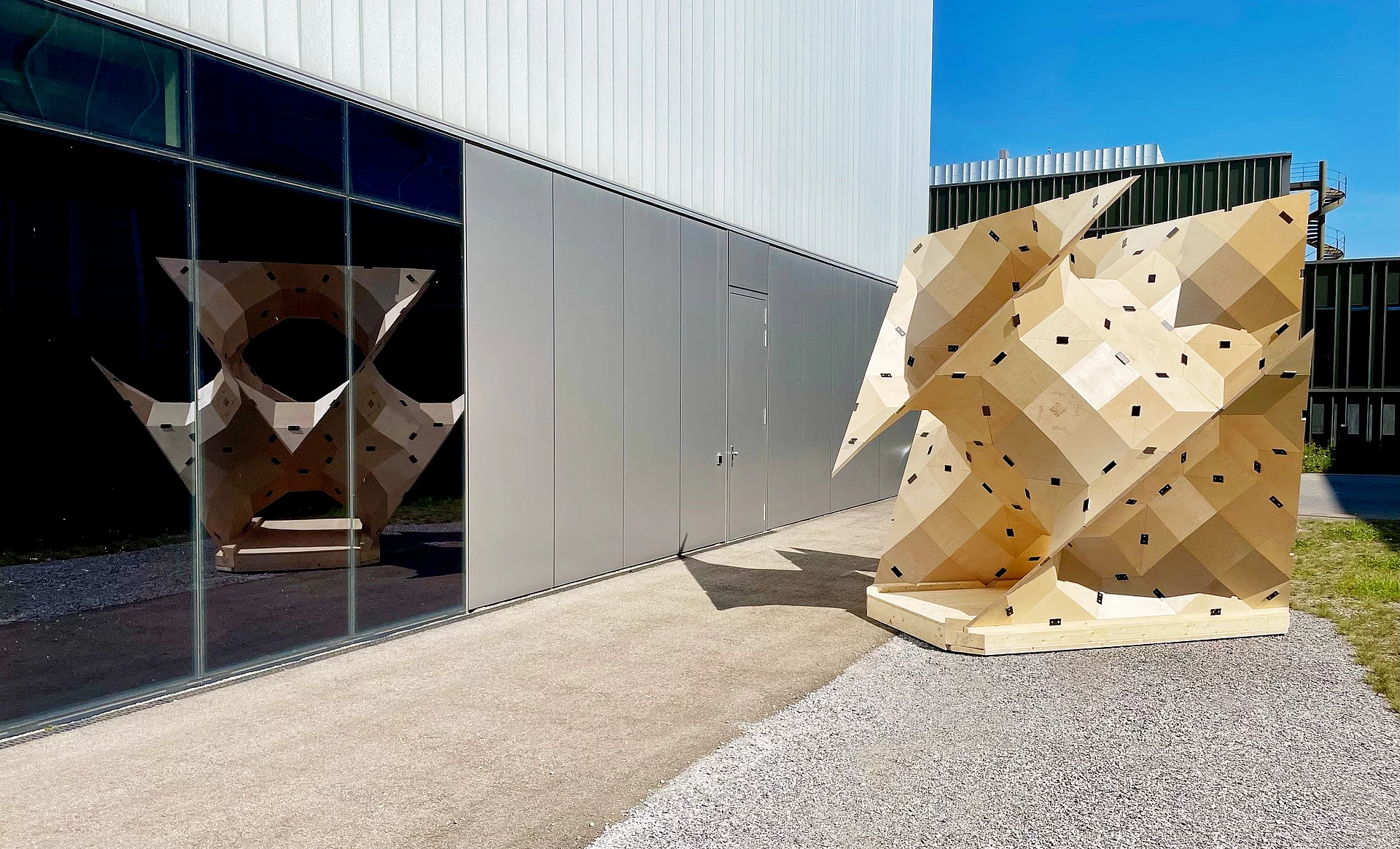 Sie muss in einem Atemzug mit «Edy dem Skifahrer» genannt werden: die futuristische Skulptur, die wir für das Symposium der IASS am Campus Hönggerberg der ETH Zürich ausführen durften. Das 3 x 3 Meter grosse Werk entstand in enger Zusammenarbeit mit Création Holz. Ausgeliefert hatte es die Meier Logistik.