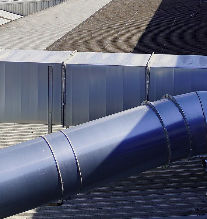 Die in die Jahre gekommene Filteranlage ist stetig mit den neuen Bearbeitungsanlagen mitgewachsen und hat kapazitätstechnisch bereits seit einiger Zeit eine kritische Schwelle erreicht. Sie befindet sich inmitten der alten Hallen des Areals, mit ungünstiger Zugänglichkeit für den Anlagenunterhalt und die Feuerwehr. Nebst der erreichten Kapazitätsgrenze im Bereich der Luftleistung fordern auch die Brandschutzvorschriften und die Energieeffizienz eine Modernisierung in der Absaugtechnik. Durch den Neubau der Halle 8 im Jahre 2021 und der damit verbundenen Klarheit, wie und wo das Bearbeitungs- und Zuschnittzentrum (BUZ) in Zukunft produzieren wird, konnte die konkrete Planung der neuen zentralen Absauganlage in Angriff genommen werden.