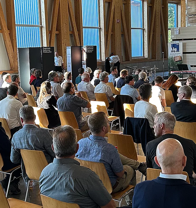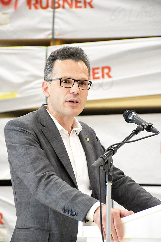 Jakob Stark, Ständerat des Kantons Thurgau und Präsident von Lignum, Holzwirtschaft Schweiz, überbrachte ebenfalls ein Grusswort in Märstetten. Er machte sich für zwei Ziele stark: Mehr Holz verbauen – und zwar vor allem Holz aus Schweizer Wäldern – und mehr auf eine Kaskadennutzung setzen, um CO2 zu speichern. Denn Holz im Bau sei die beste Klimamassnahme, die es gebe.