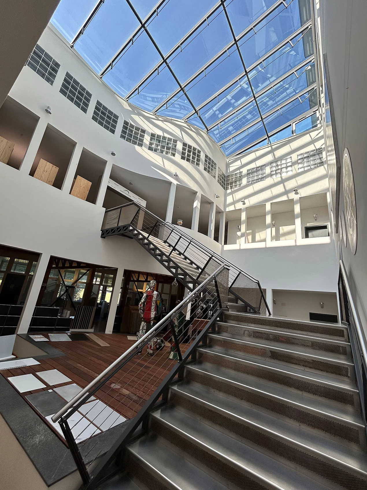 Im Gebäude war vorher mit Parquet Durrer ein Bodenspezialist ansässig. Im Mittelteil sorgte ein Brunnen für Feuchtigkeit: Das Wasser stieg in Form von Dampf bis zur gläsernen Kuppel zum Dach und verteilte sich von dort aus zu den Seiten. Es konnte somit im Raum zirkulieren und die Feuchtigkeit sorgte dafür, damit das Holz nicht zerriss.