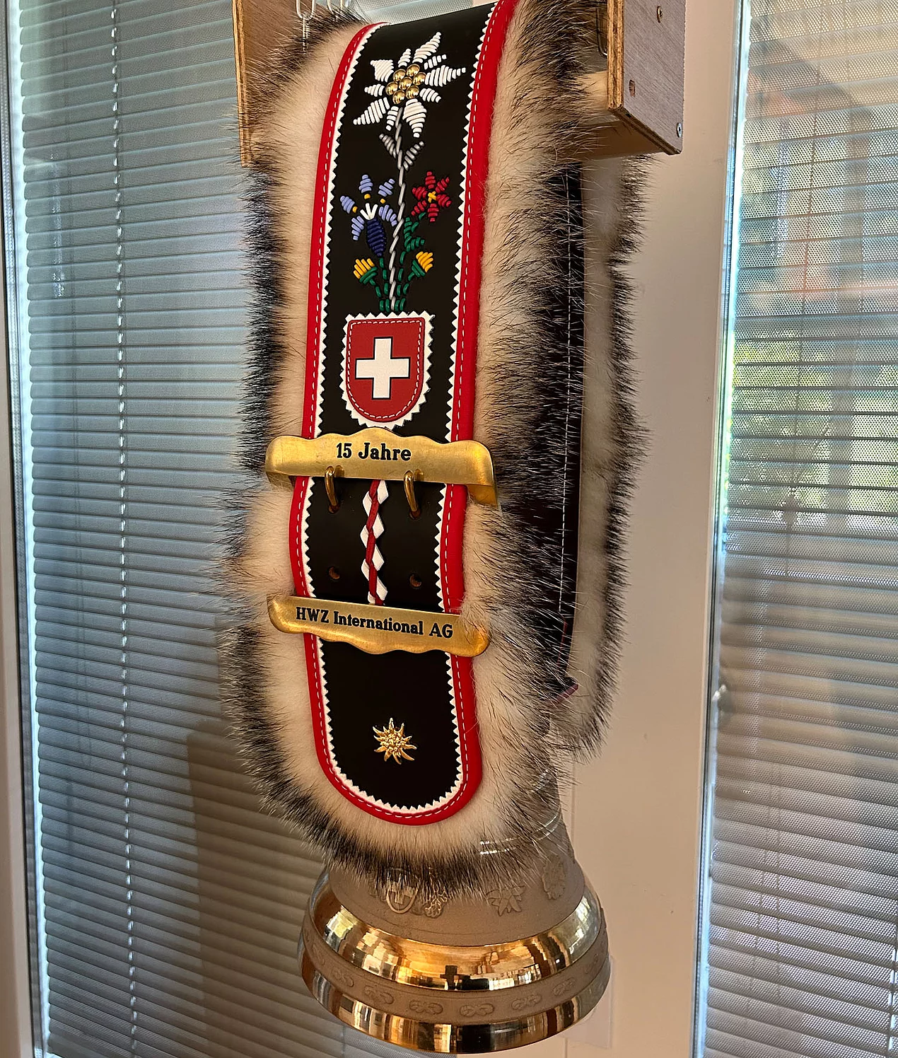 Dass sich das Erfolgsmodell HWZI längst bewährt hat, zeigt die 16-jährige Firmengeschichte. Apropos: Zum 15-jährigen Jubiläum im letzten Jahr organisierten die Mitarbeitenden eine grosse urige Glocke, die sich nun im Entrée befindet. Vergleichbare Glocken werden gern an ausländische Unternehmen verschenkt. Das international geläufige Präsent ist zugleich ein Bekenntnis zur Schweizer Kultur.