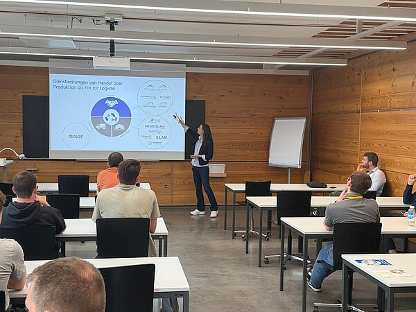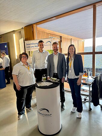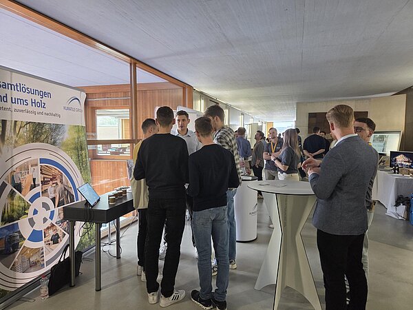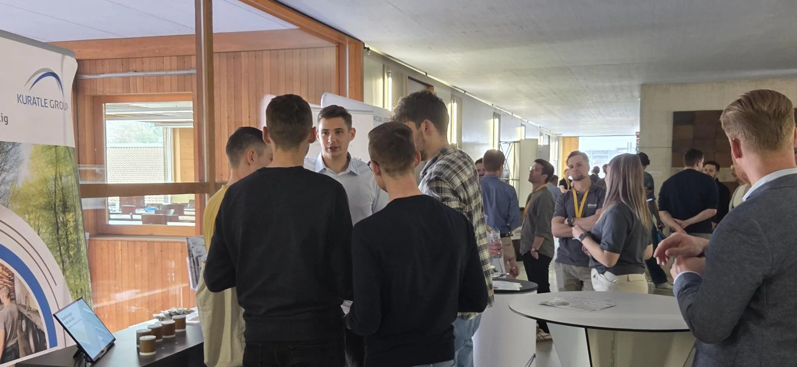 An unserem Stand standen Corinne Kuratle, Head of People & Culture, Samuel Halter, Leiter Technik & Objekte, Susanne Meier, Berufsbildungsverantwortliche und Raphael Forster, ehemaliger Praktikant Kuratle Group, den Studierenden für Auskünfte zur Verfügung. Sie beantworteten zahlreiche Fragen und stellten unser Ecosystem, unsere Gesamtlösungen rund ums Holz sowie die Karrierechancen und Berufsvielfalt innerhalb der Kuratle Group vor. Zudem gab Corinne Kuratle den Studierenden in einem Kurzvortrag einen kompakten Einblick in unser Unternehmen.