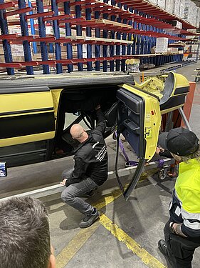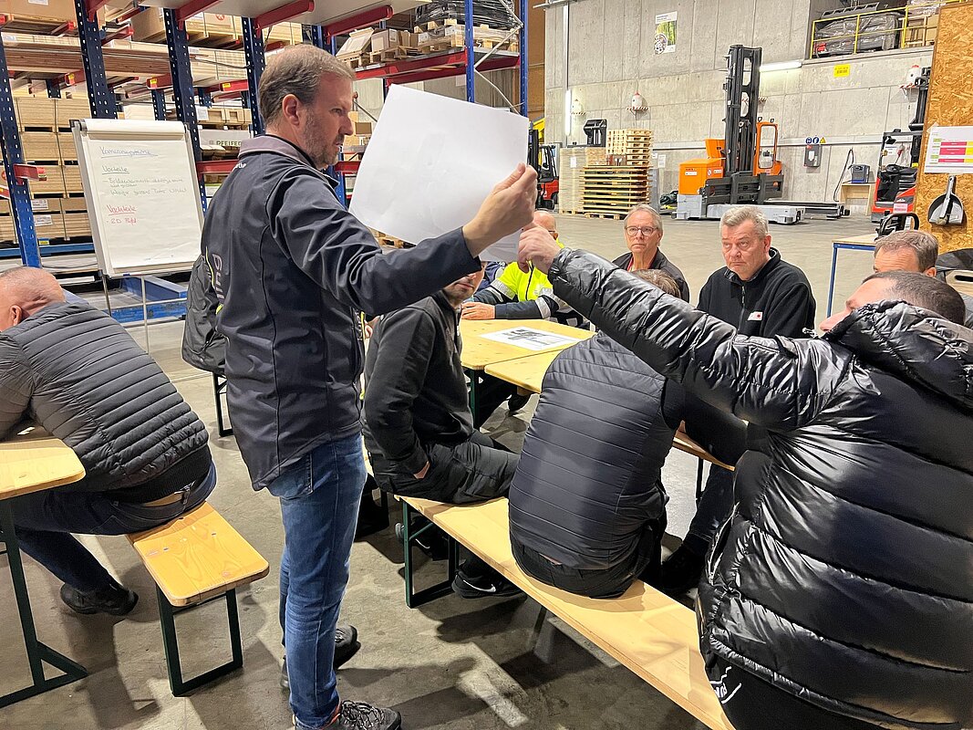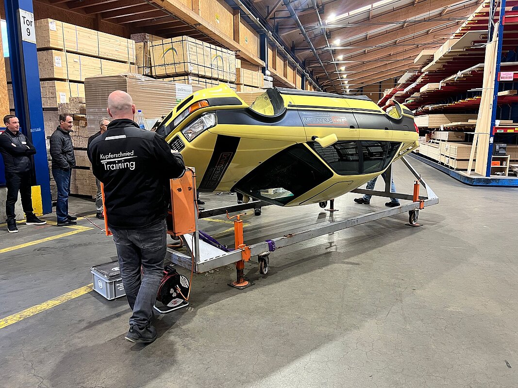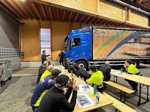 Der Weiterbildungstag war in vier Blöcke unterteilt, die sowohl theoretische als auch praktische Übungen umfassten. In einem Überschlagssimulator lernten die Teilnehmenden, wie sie sich in einer solchen Situation richtig zu verhalten und worauf sie achten müssen. In einem weiteren Block wurde den Chauffeuren unser Kuratle Group Ecosystem vorgestellt und das Zusammenspiel zwischen den Bereichen Handel, Produktion und Logistik veranschaulicht. Auch erhielten die Chauffeure der Meier Logistik praxisrelevante Informationen zu den Themen Manöver und Verkehrsvorschriften.