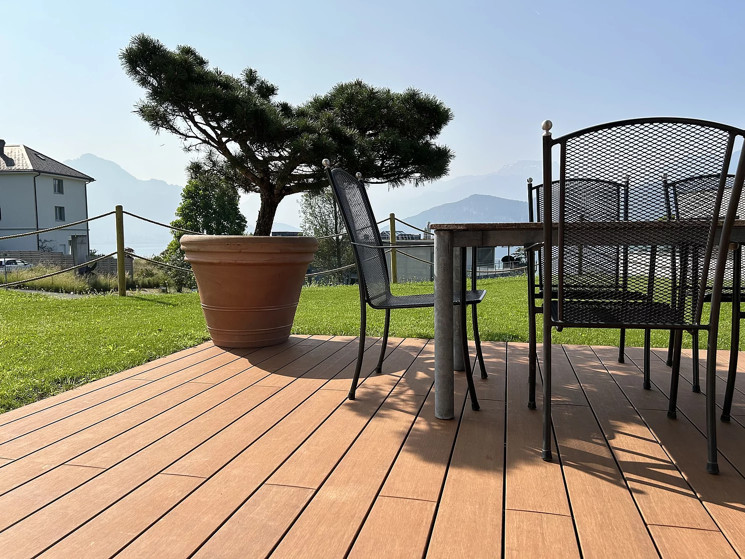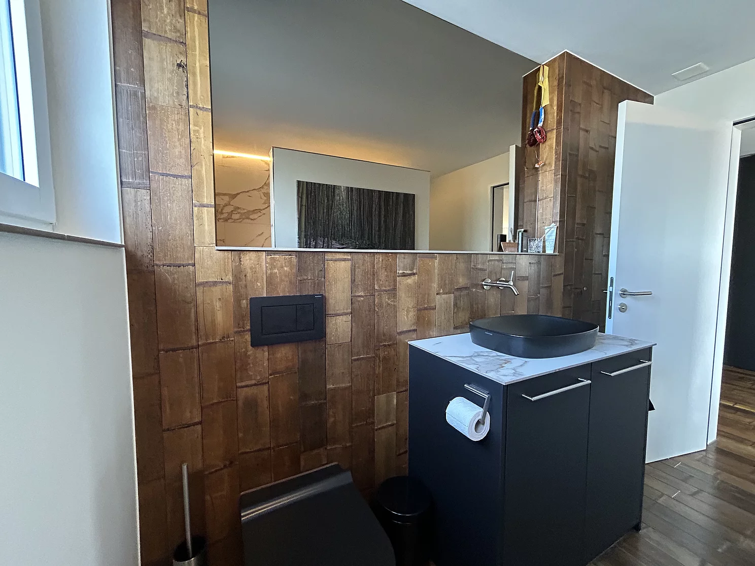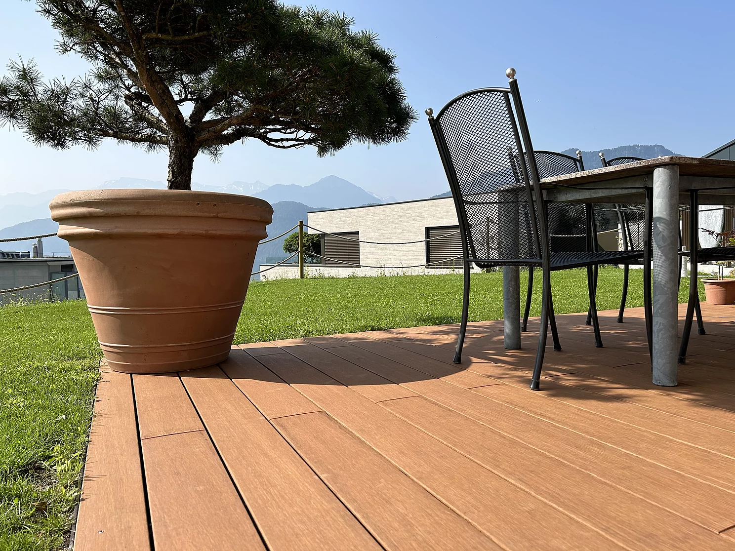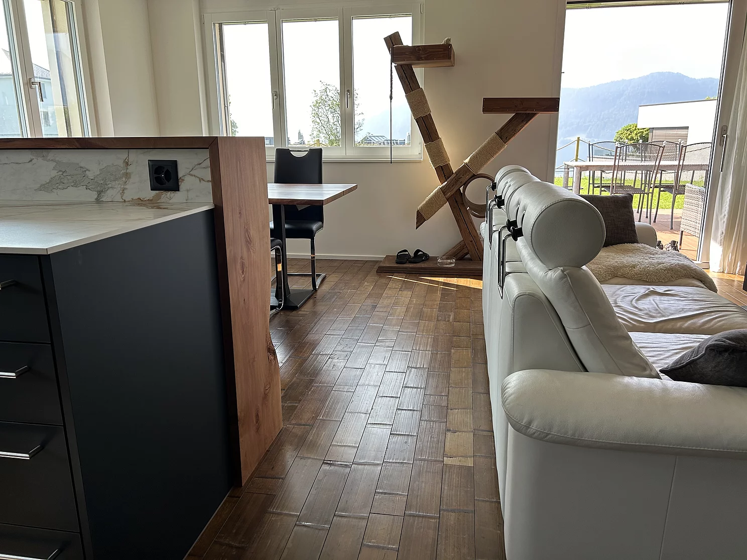 Was das Handwerk auch im Privatleben so alles bewirken kann, zeigt ein ­wunderschönes Mehrfamilienhaus in Weggis. Hier leben in verschiedenen Wohnungen drei Brüder ­unter einem Dach zusammen. Die Schreiner- und Spenglerarbeiten wurden privat ausgeführt und blieben Familienangelegenheit. Das Material für Böden, Terrassen, Küchen und ­Bäder kam von Kuratle & Jaecker.