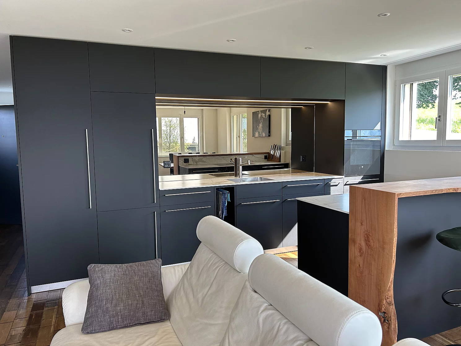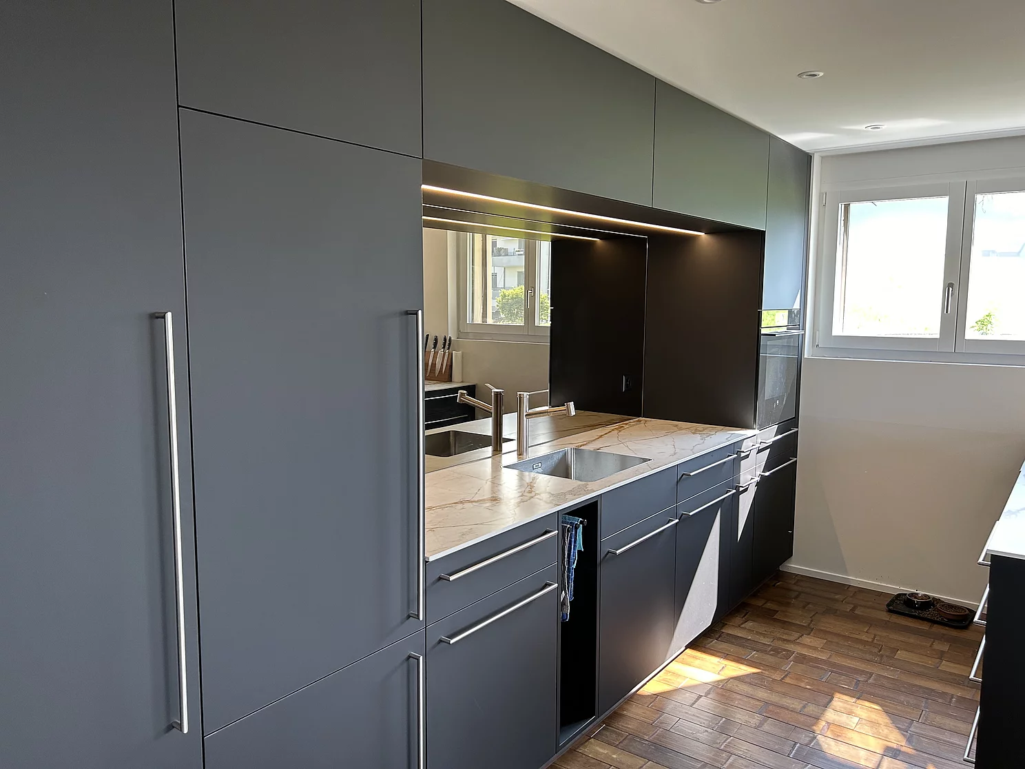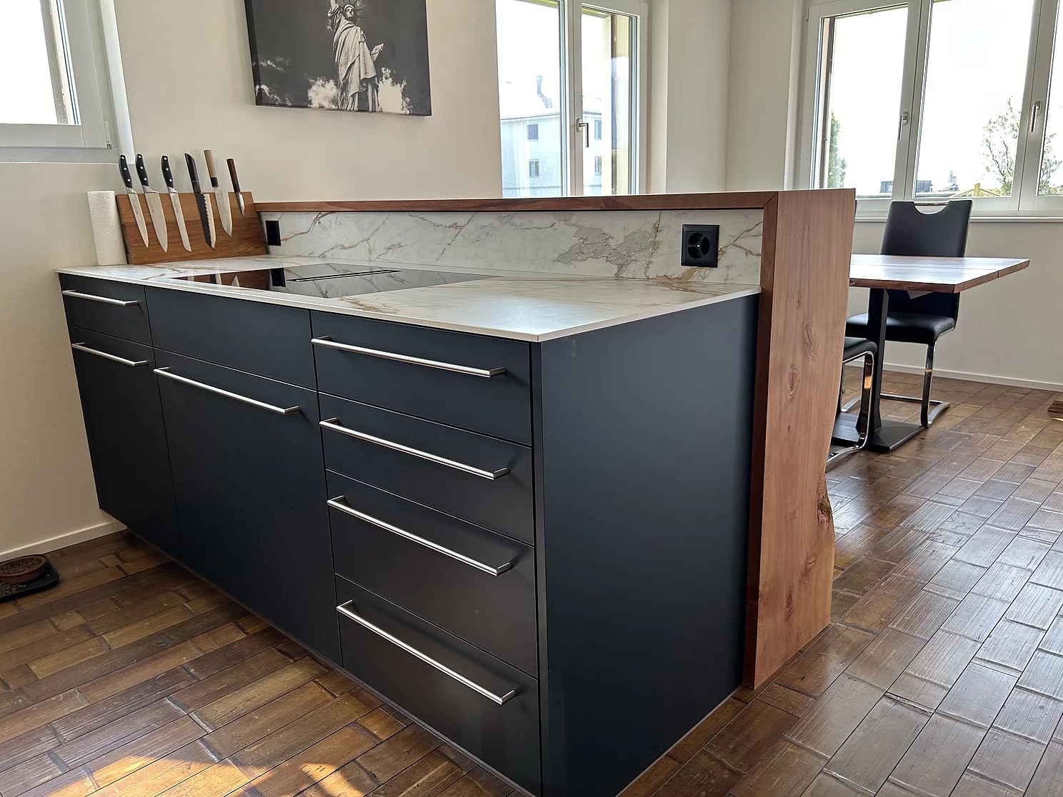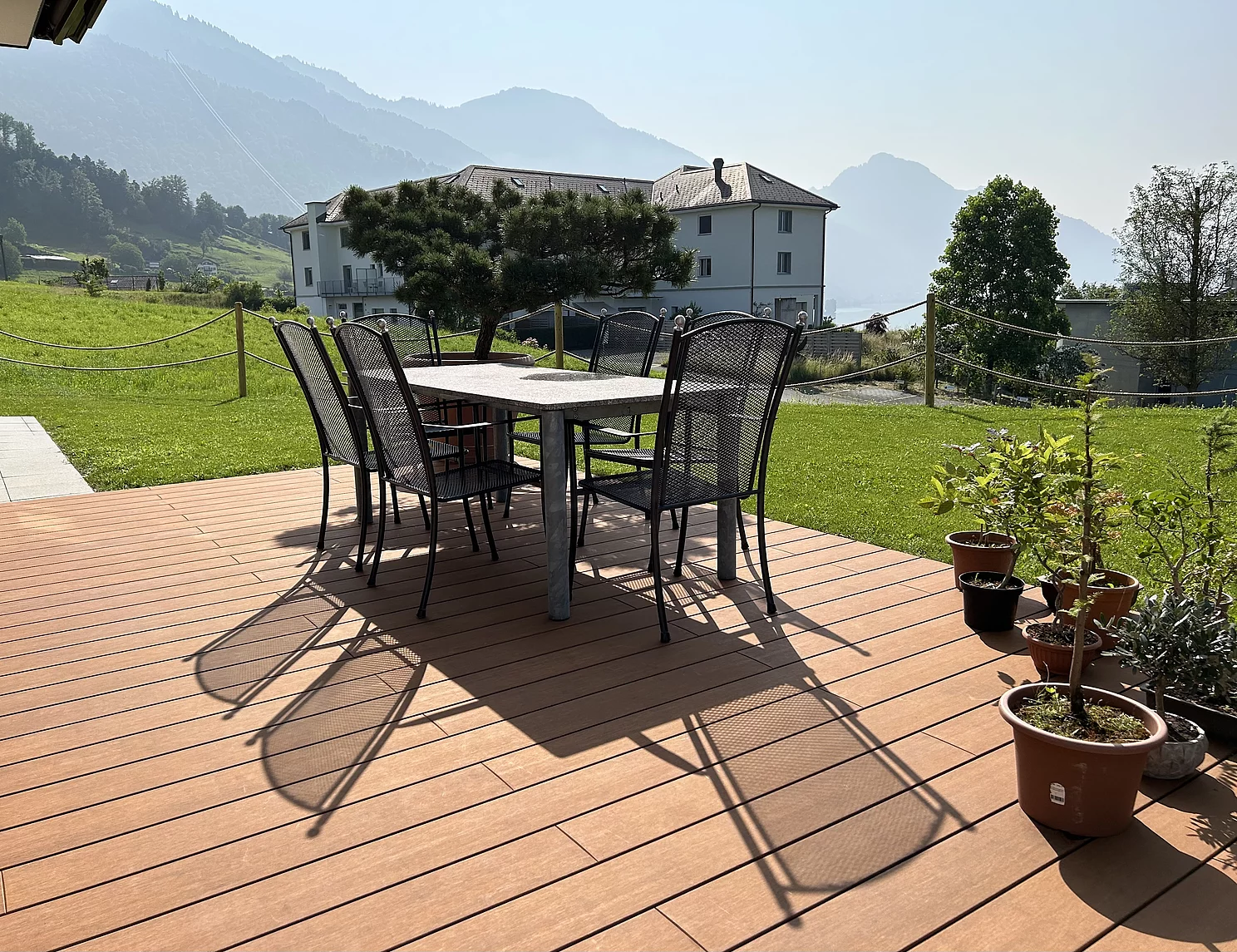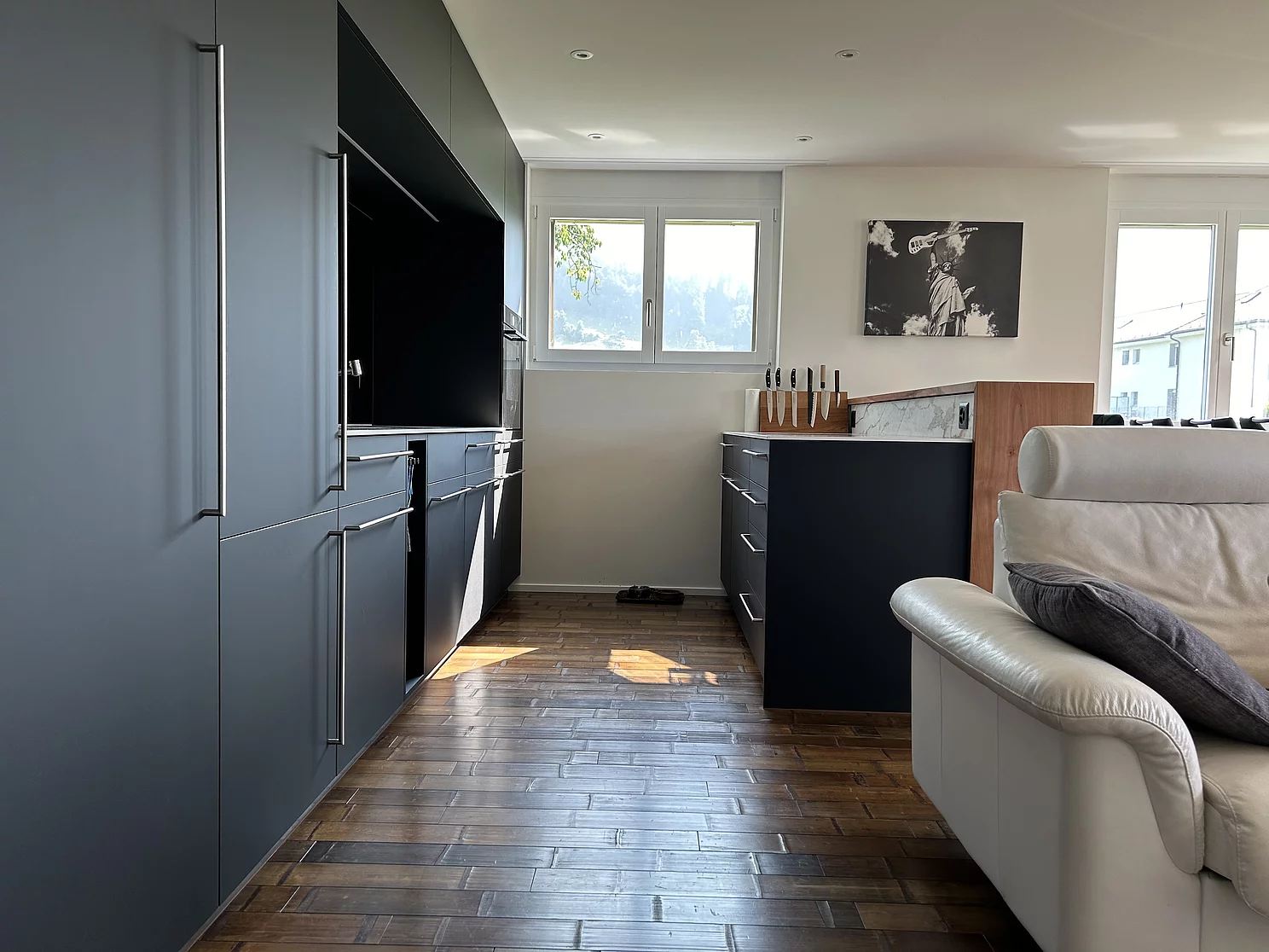 Was das Handwerk auch im Privatleben so alles bewirken kann, zeigt ein ­wunderschönes Mehrfamilienhaus in Weggis. Hier leben in verschiedenen Wohnungen drei Brüder ­unter einem Dach zusammen. Die Schreiner- und Spenglerarbeiten wurden privat ausgeführt und blieben Familienangelegenheit. Das Material für Böden, Terrassen, Küchen und ­Bäder kam von Kuratle & Jaecker.