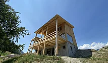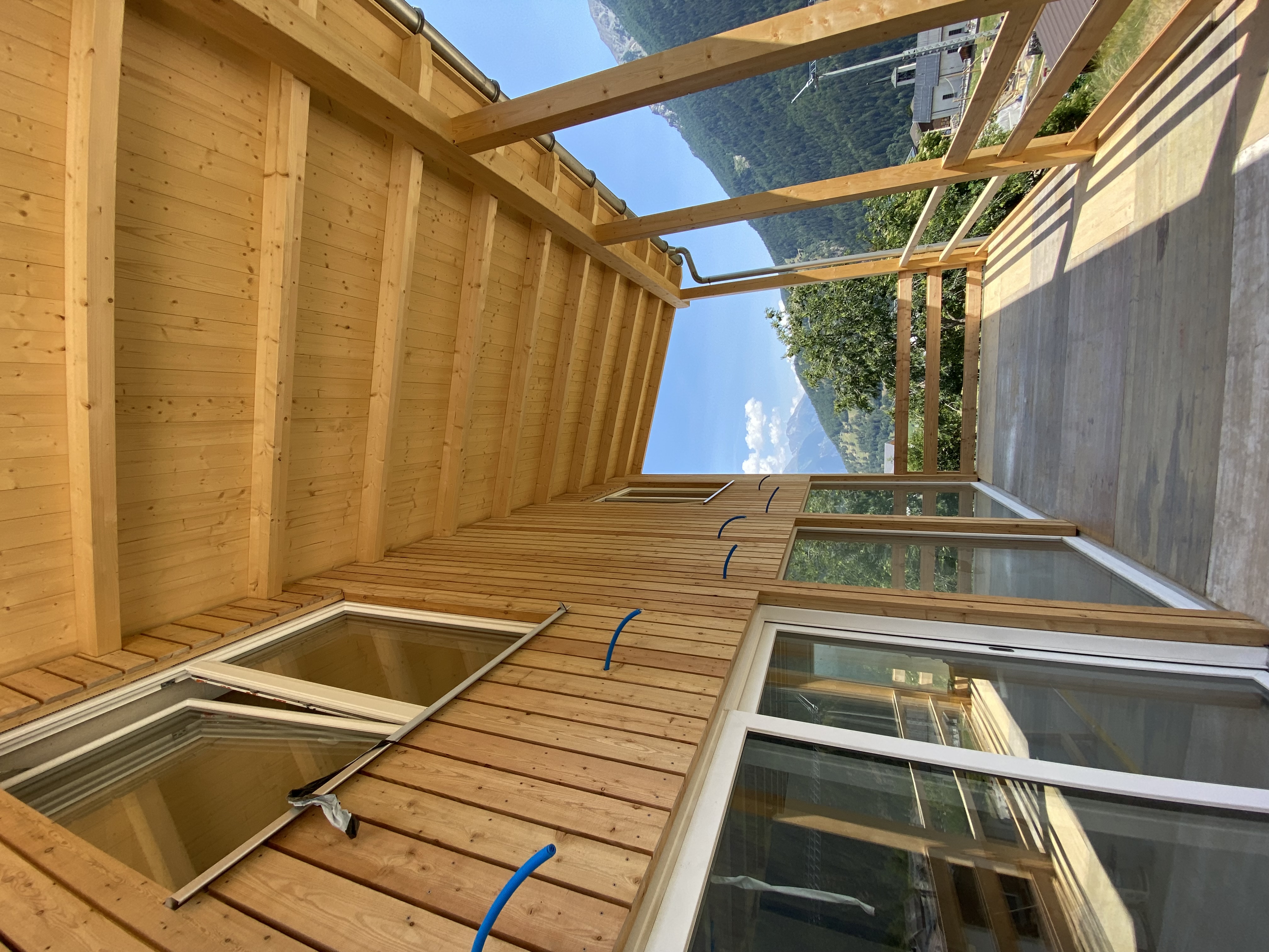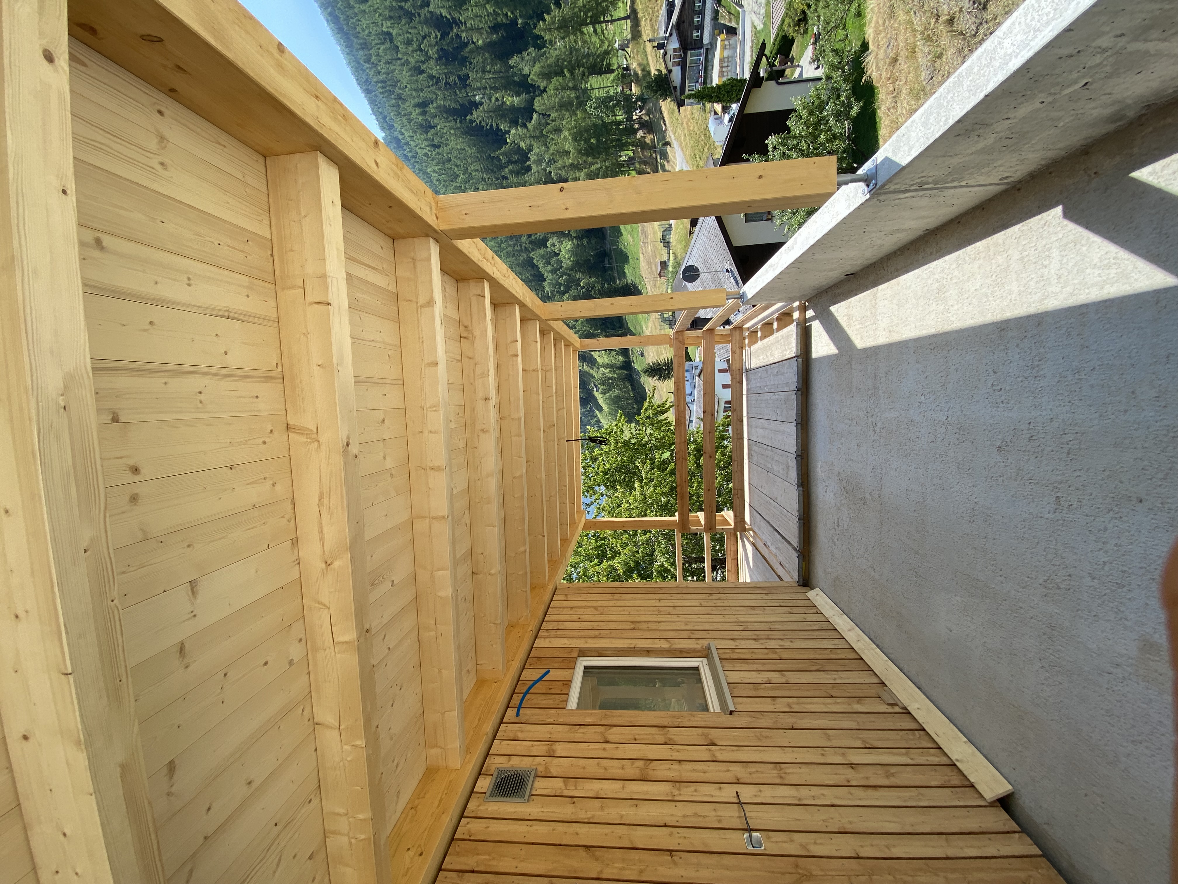 Für das Haus Borter durften wir den Abbund für den Elementbau, so wie für die sichtbare Dachkonstruktion und die Terrassen ausführen. Zudem haben wir bei der Konstruktion für die Terrassen bei uns im Werk die Sherpas vormontiert.