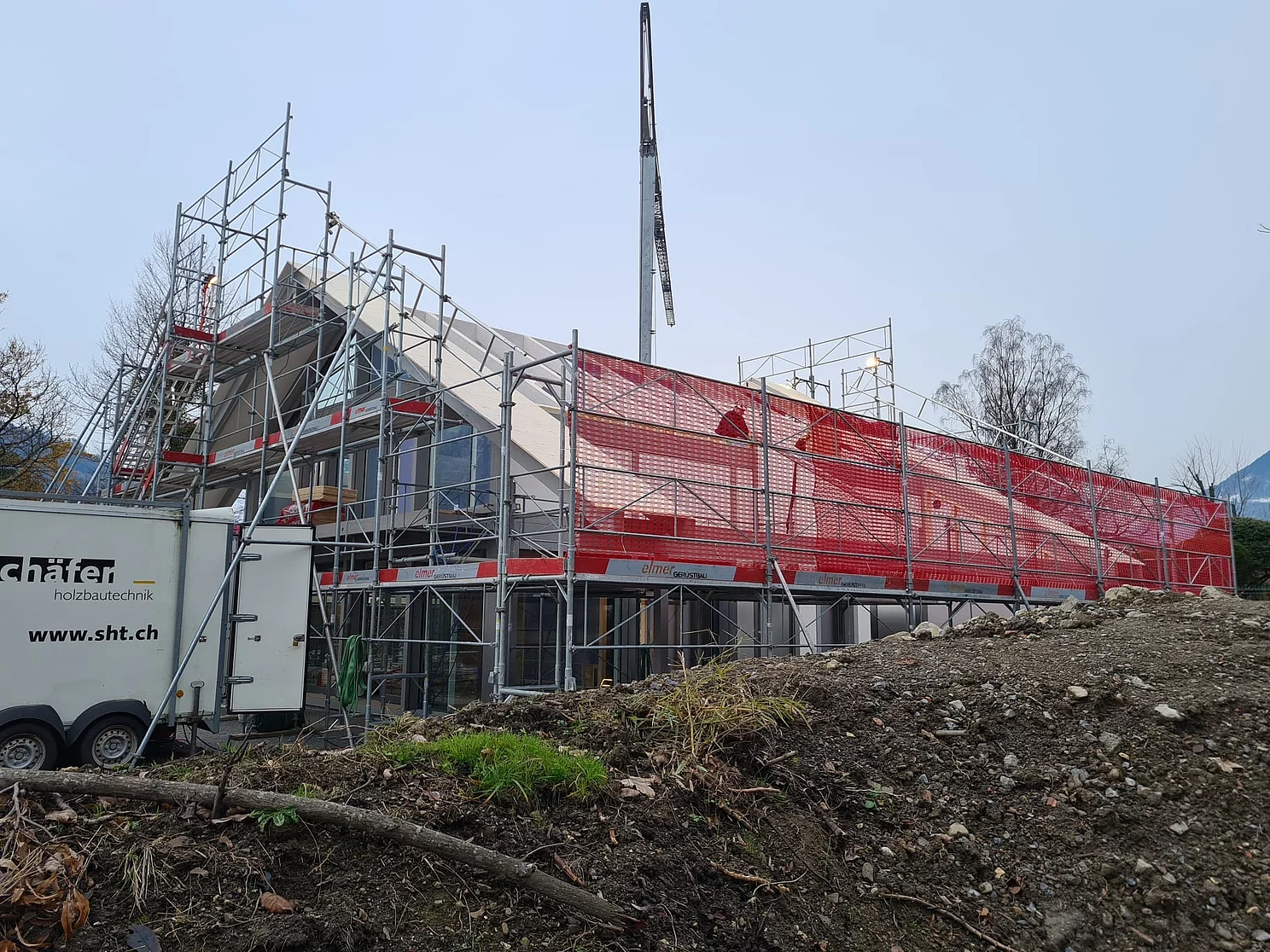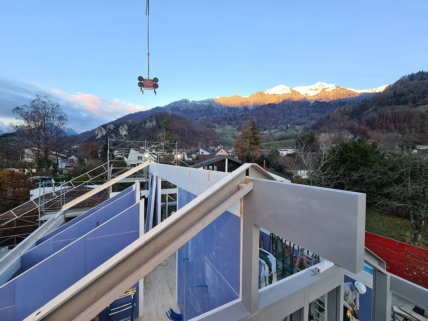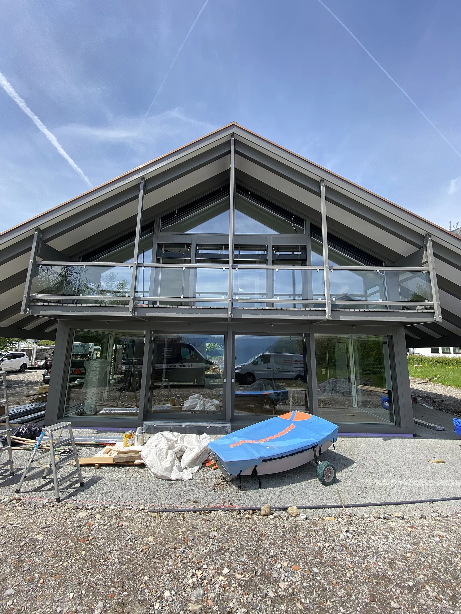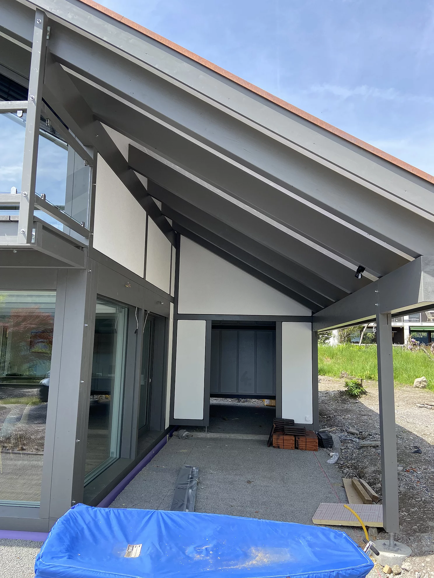 Den Zuschlag dafür wurde unter anderem an uns vergeben weil wir dem Kunden seinen Wunschtermin garantieren konnten und es so keine Verzögerungen im Bauprogramm gab. Die abgebundenen Bauteile wurden direkt von uns grundiert, damit konnte auf der Baustelle Zeit gespart werden und es musste nur noch der Schlussanstrich durch einen Maler erfolgen.