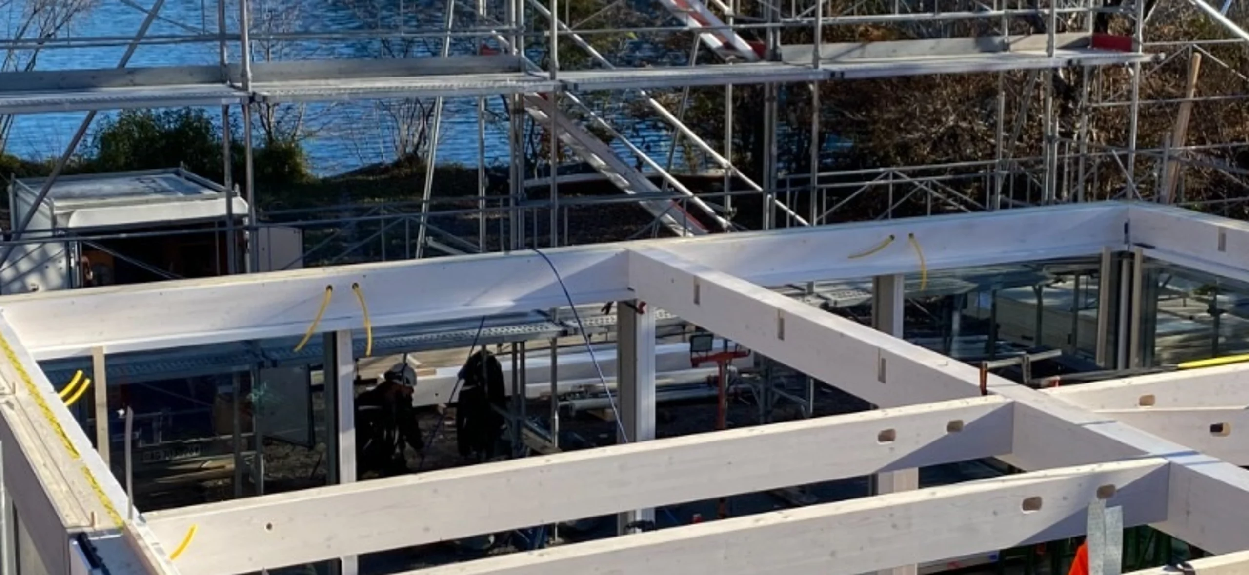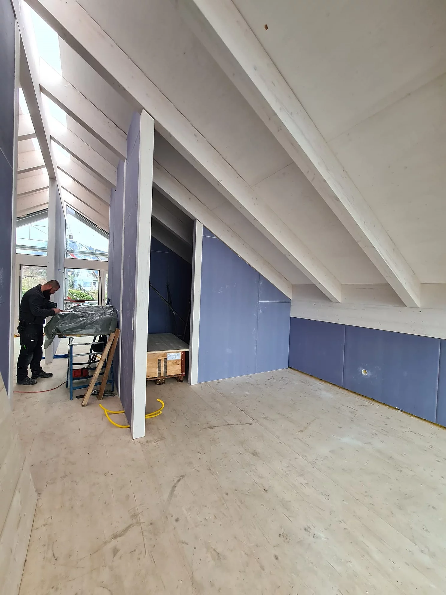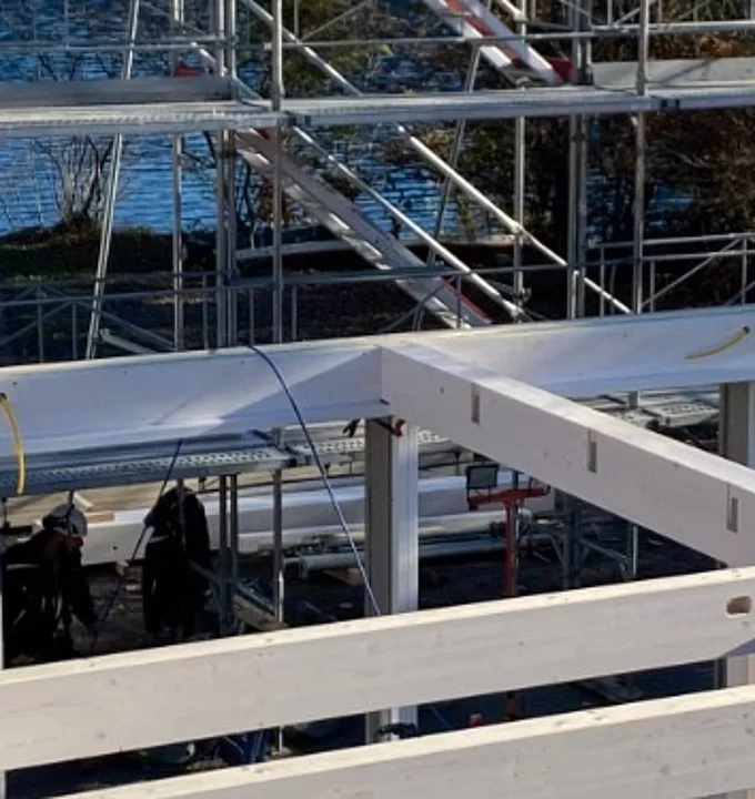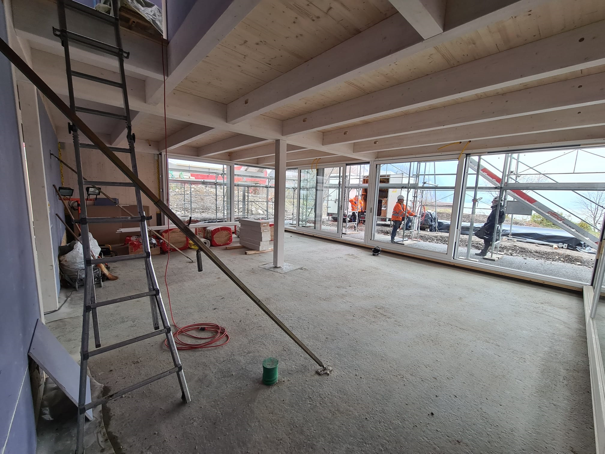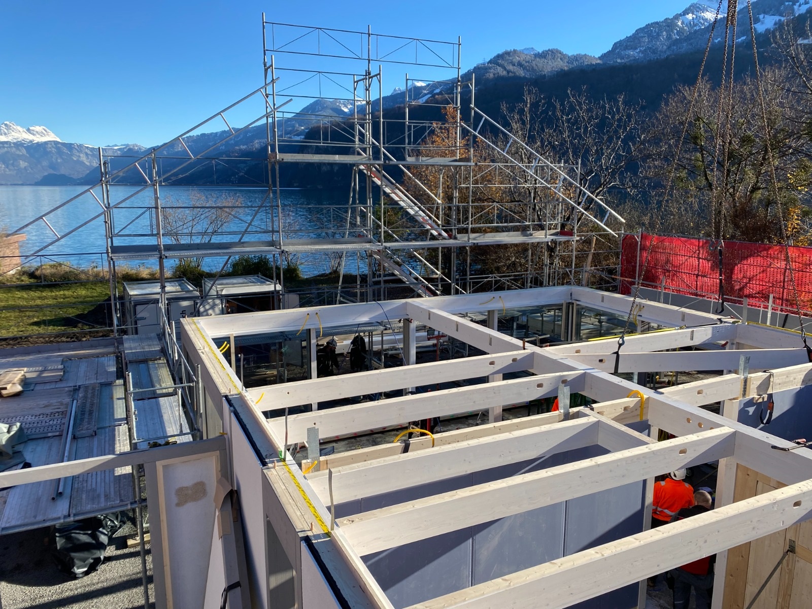 Den Zuschlag dafür wurde unter anderem an uns vergeben weil wir dem Kunden seinen Wunschtermin garantieren konnten und es so keine Verzögerungen im Bauprogramm gab. Die abgebundenen Bauteile wurden direkt von uns grundiert, damit konnte auf der Baustelle Zeit gespart werden und es musste nur noch der Schlussanstrich durch einen Maler erfolgen.
