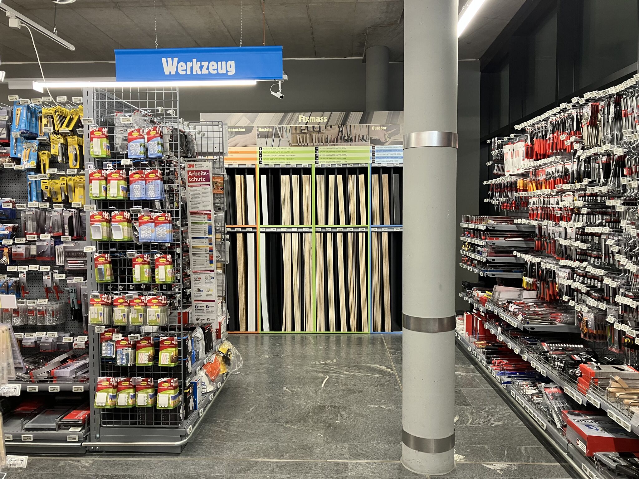 Die aktuelle wirtschaftliche Lage fördert neue Ideen, Methoden und Massnahmen wie nie zuvor. Auch DIY-Wood ist diesem Trend gefolgt und durfte mit dem Fixmass-Layout in der ersten Coop Supermarkt-Filiale in Bern Schönburg neue Impulse setzen. Mit dem Fixmass-Layout am Hotspot Bern Schönburg bieten wir Endkunden eine vielfältige Auswahl hochwertiger Platten im handlichen Baumarkt-Format 600 x 600 mm und 1200 x 600 mm – kompakt präsentiert und attraktiv beworben, selbst bei knappen Platzverhältnissen. Egal für welches Heimprojekt – das Fixmass-Layout überzeugt auf ganzer Linie!
