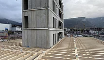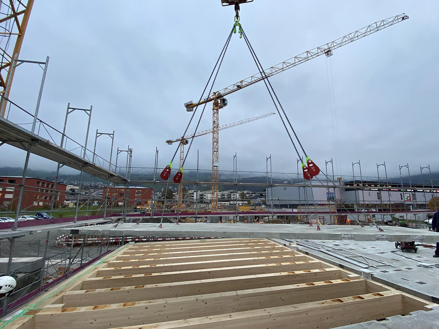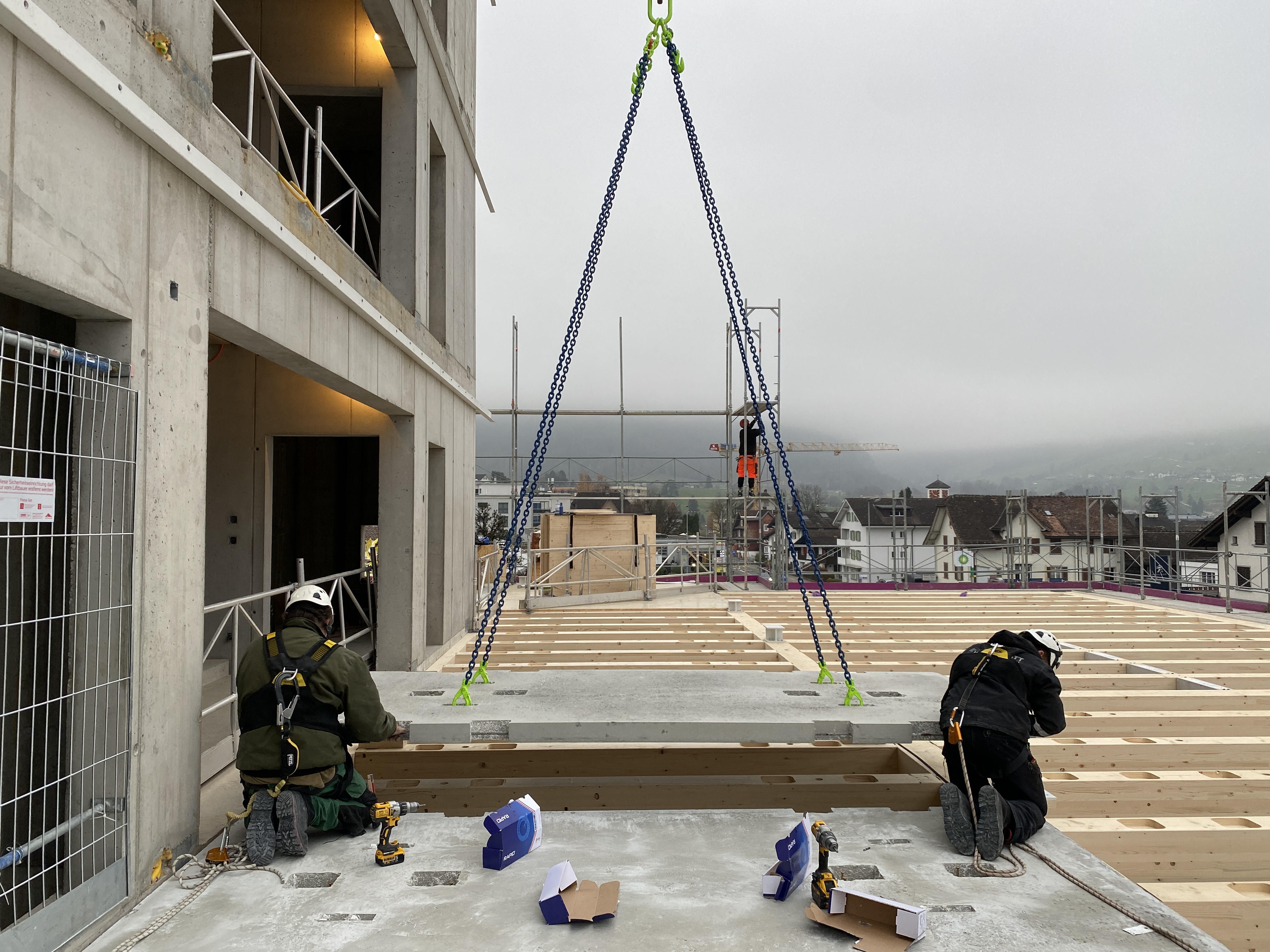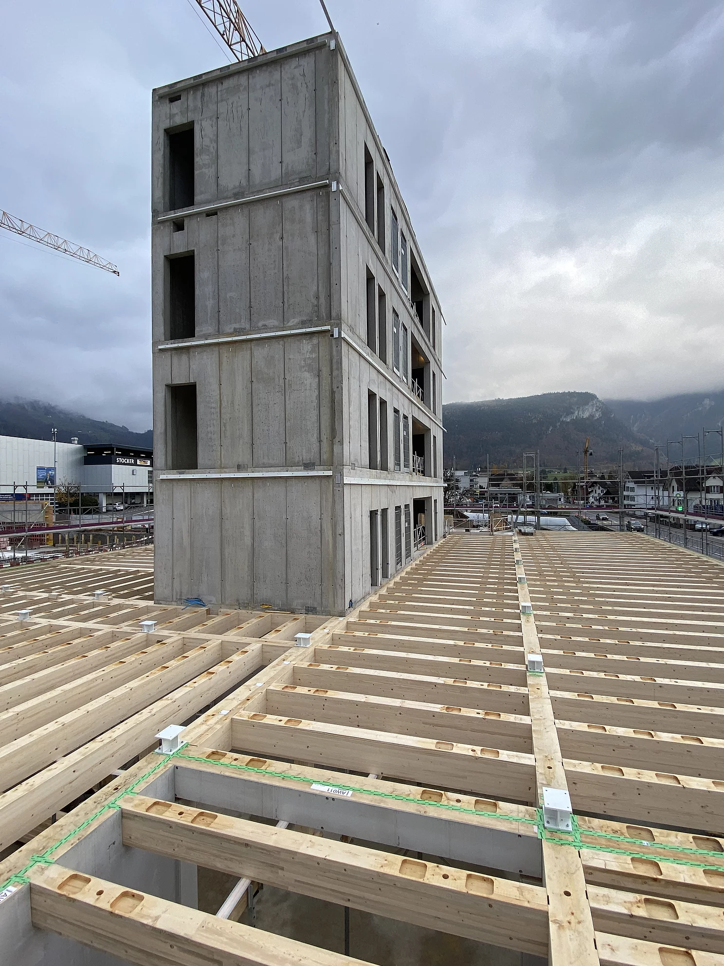 Verantwortlich für den reibungslosen Ablauf auf der Baustelle war Oliver Hasler, Projektleiter Häring AG. Darauf angesprochen sagt Oliver Hasler: «Die professionelle Planung seitens Wilma und die aktive Kommunikation haben wesentlich zum effizienten Einbau der Geschossdecken beigetragen. Mit unseren gut eingespielten Zimmerleuten konnten wir an einem Tag 750 Quadratmeter Geschossdecke versetzen, am Folgetag die Nebenarbeiten abschliessen und bereits mit dem nächsten Geschoss starten.»