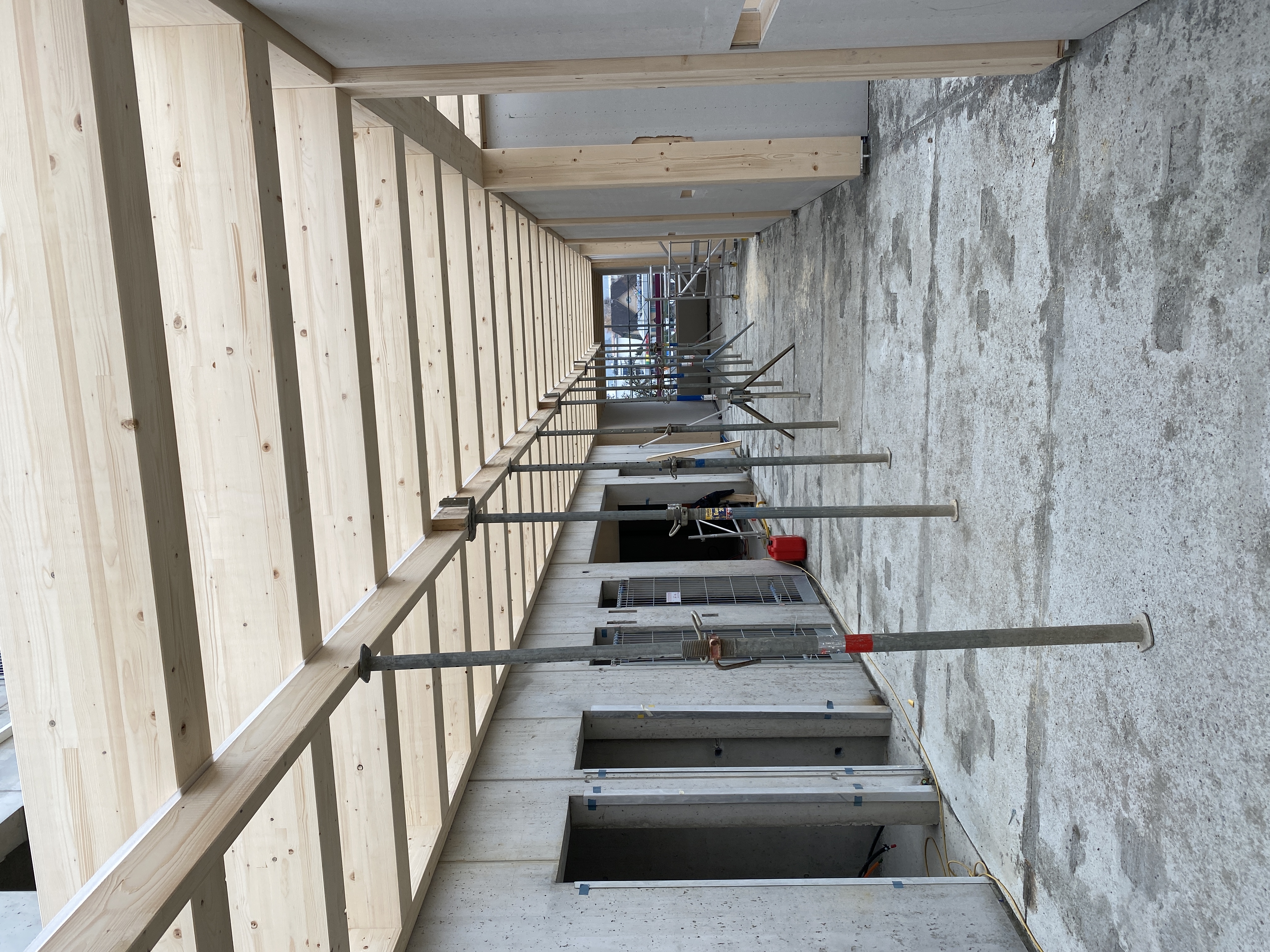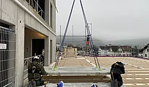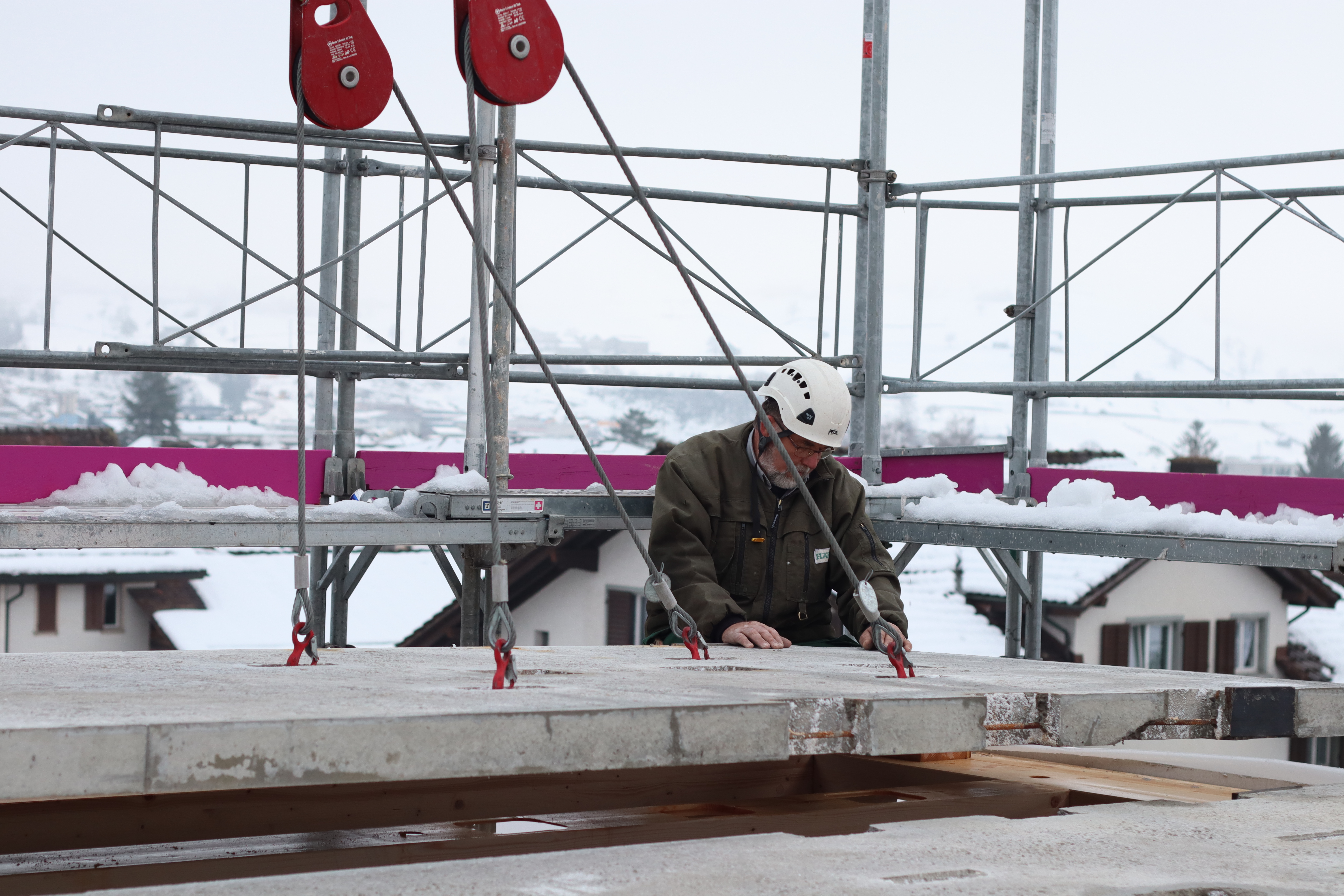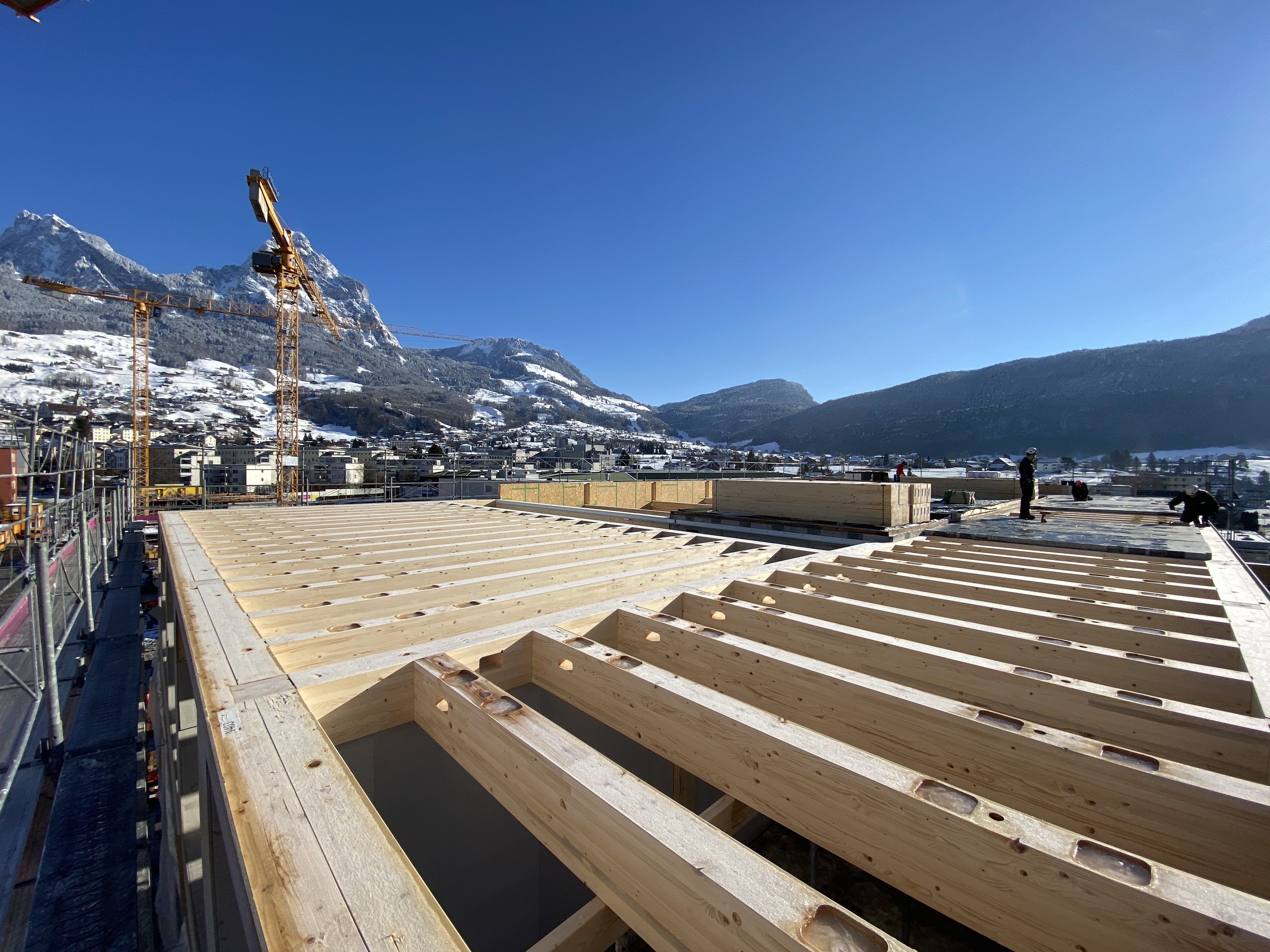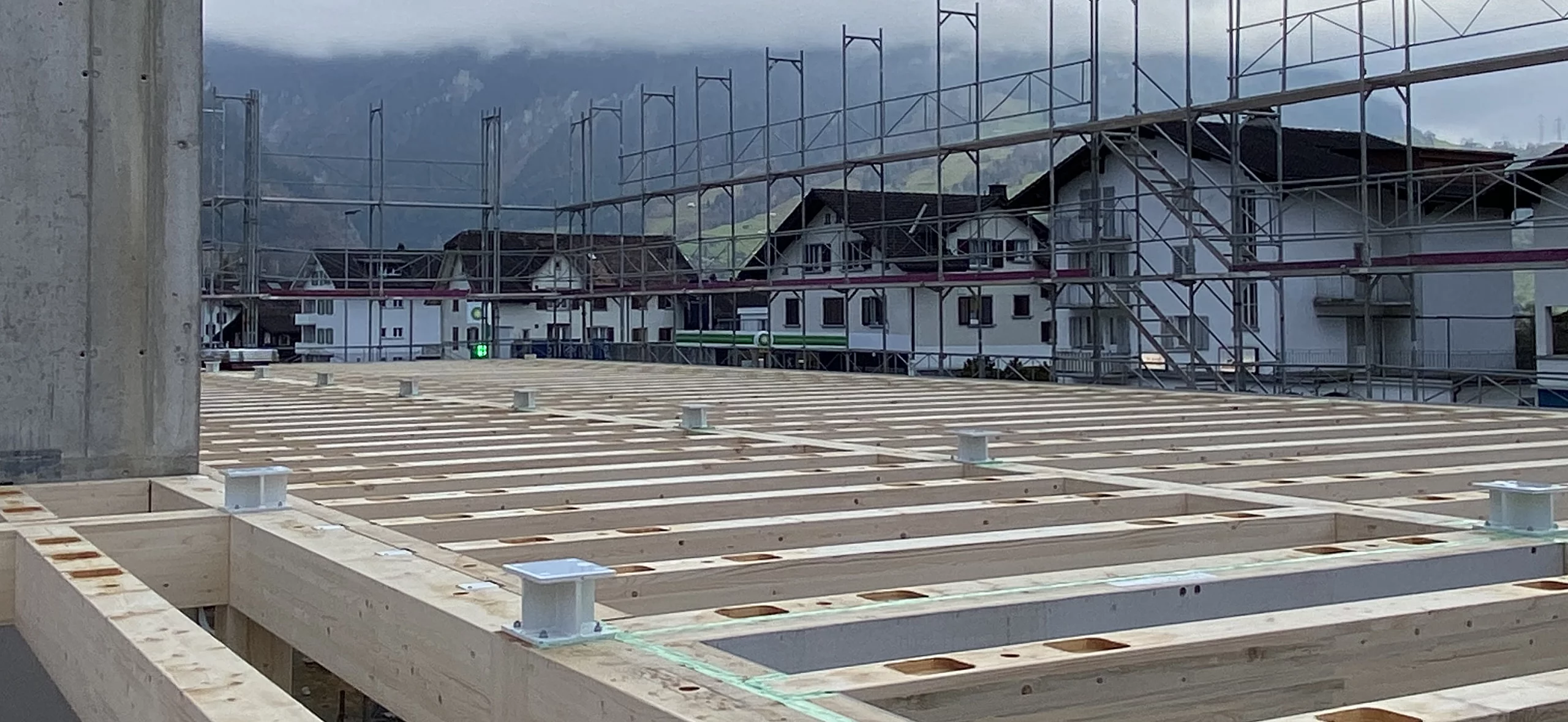 Verantwortlich für den reibungslosen Ablauf auf der Baustelle war Oliver Hasler, Projektleiter Häring AG. Darauf angesprochen sagt Oliver Hasler: «Die professionelle Planung seitens Wilma und die aktive Kommunikation haben wesentlich zum effizienten Einbau der Geschossdecken beigetragen. Mit unseren gut eingespielten Zimmerleuten konnten wir an einem Tag 750 Quadratmeter Geschossdecke versetzen, am Folgetag die Nebenarbeiten abschliessen und bereits mit dem nächsten Geschoss starten.»
