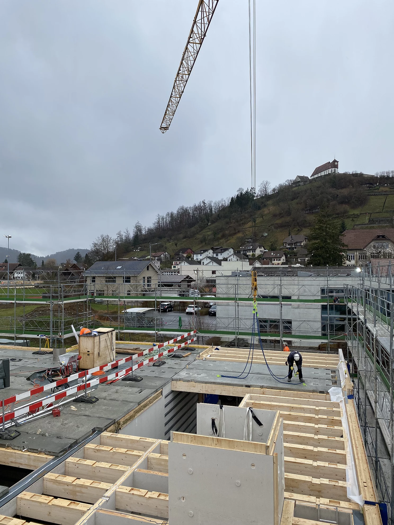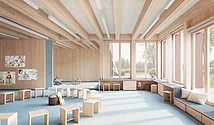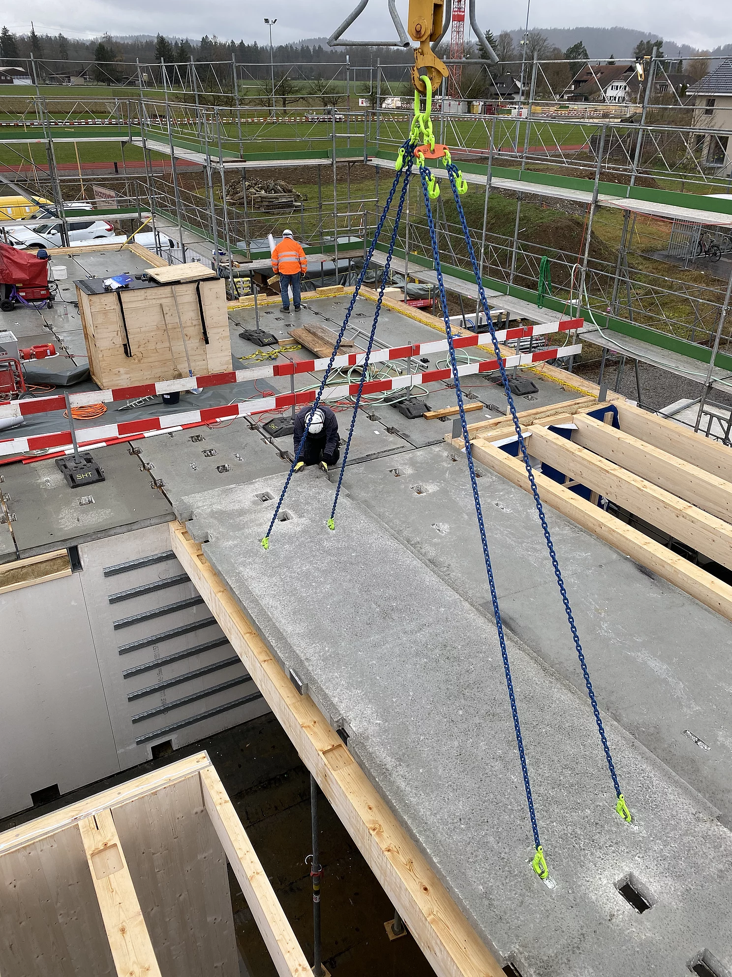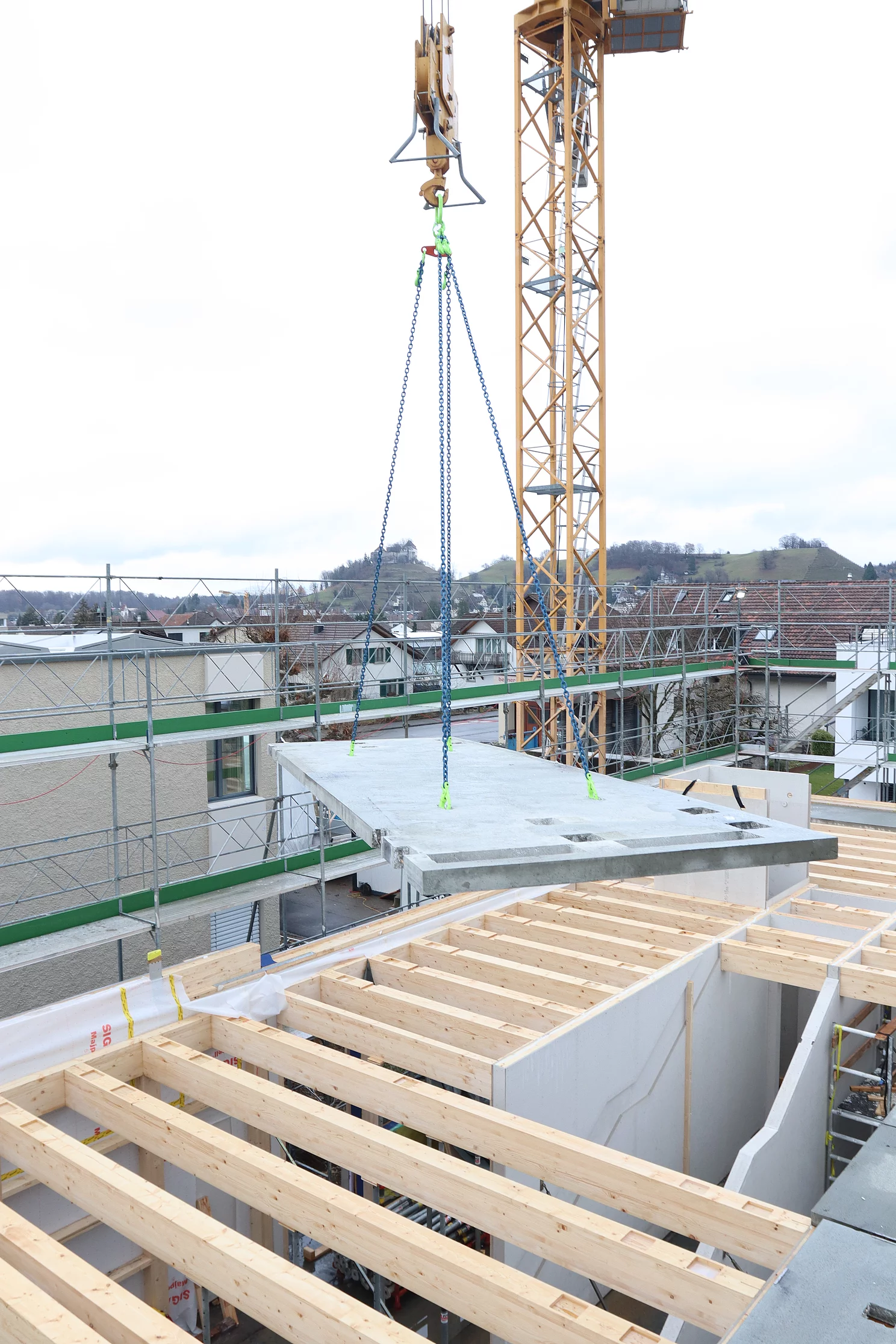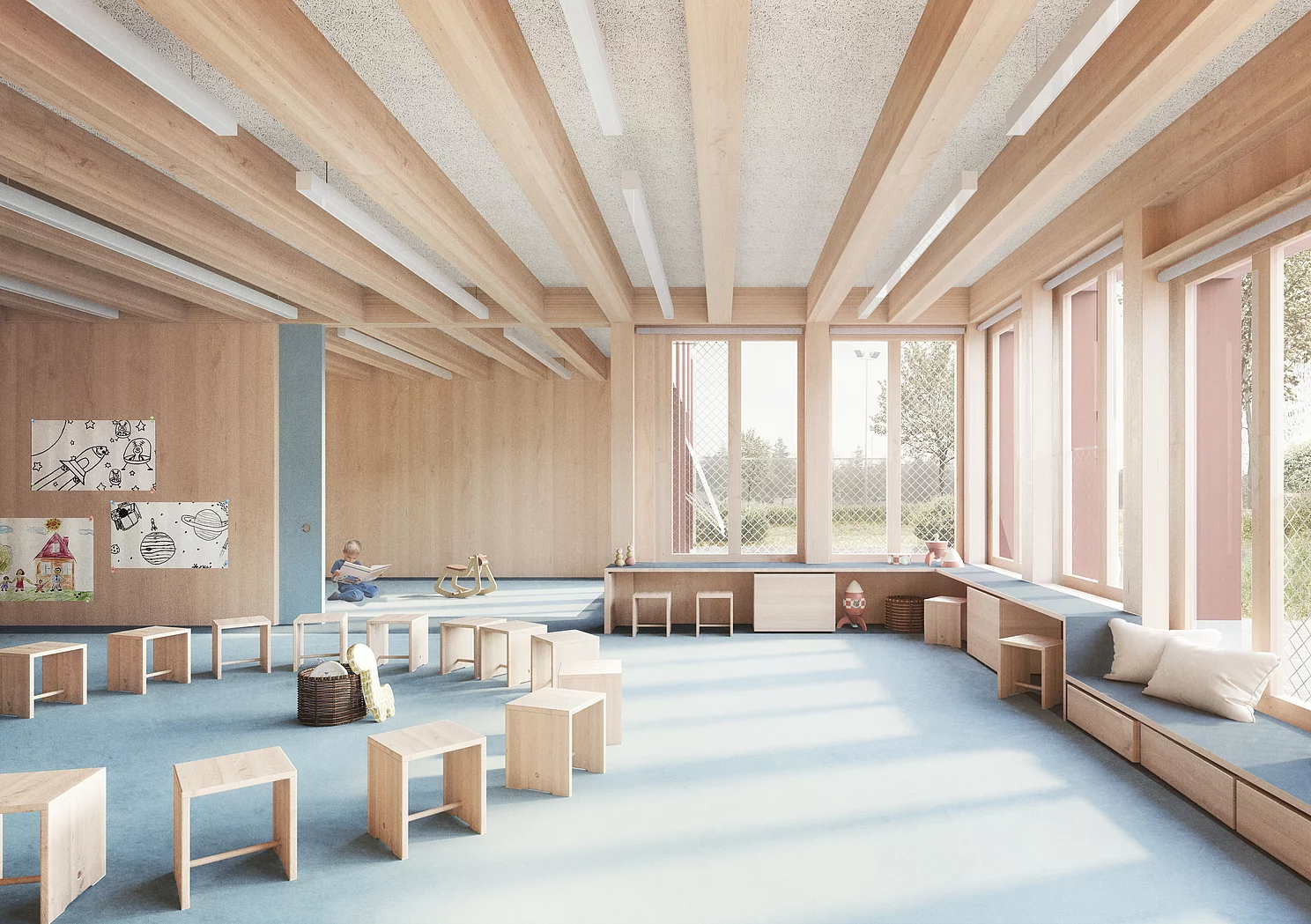 Die Decken des neuen Kindergartens wurden mit dem System Wilma gebaut. Den Wettbewerb für die Ausschreibung haben die BEM Architekten aus Baden sowie die Schäfer Generalunternehmung aus Dottikon gewonnen. Die Holzbauarbeiten wurden durch die Schäfer Holzbautechnikt AG ausgeführt.