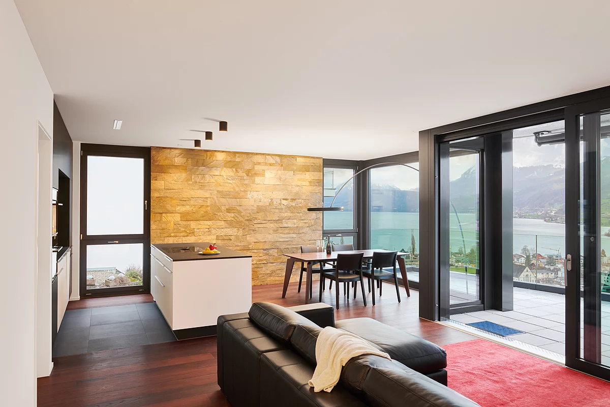 Sagenhafte Aussicht, sagenhafter Bodenbelag: In Ennetbürgen am Vierwaldstättersee durften wir uns jüngst an der Neugestaltung eines Wohnhauses beteiligen. Verlegt wurde das exklusive Swiss-Made-Parkett CASTELLO Terra Più von Ticinoro. Das Ergebnis überzeugt auf ganzer Linie.